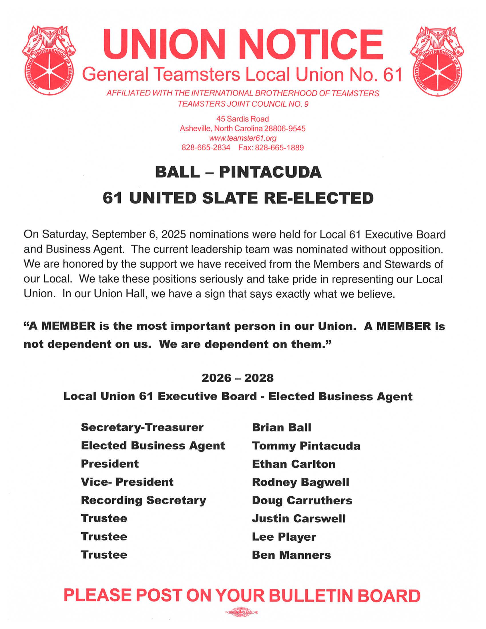 Since 1957, Local 61 has played a key role in improving the working conditions for men and women across Western North Carolina. We represent various industries including UPS,