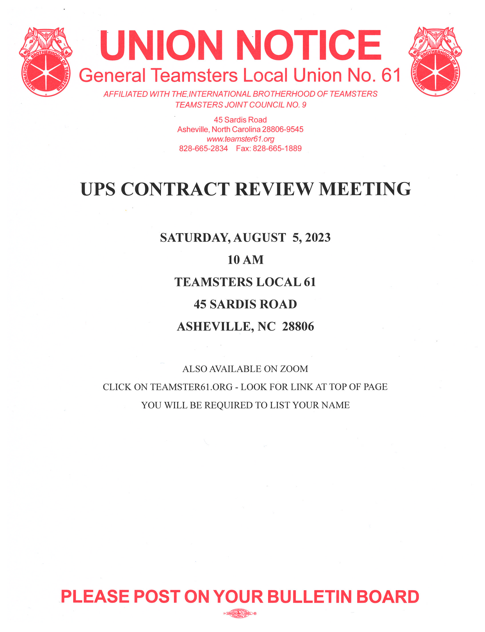 NORTH CAROLINA UPS TEAMSTER STEWARDS FOCUS ON CONTRACT ENFORCEMENT, INTERNAL ORGANIZING